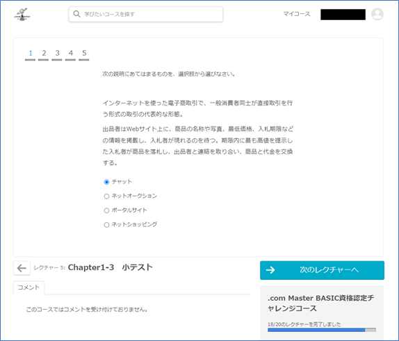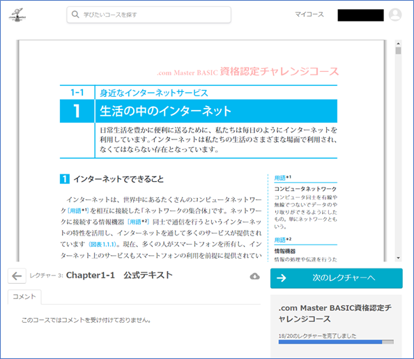 (画面は.com Master BASIC資格認定チャレンジコースのものです)