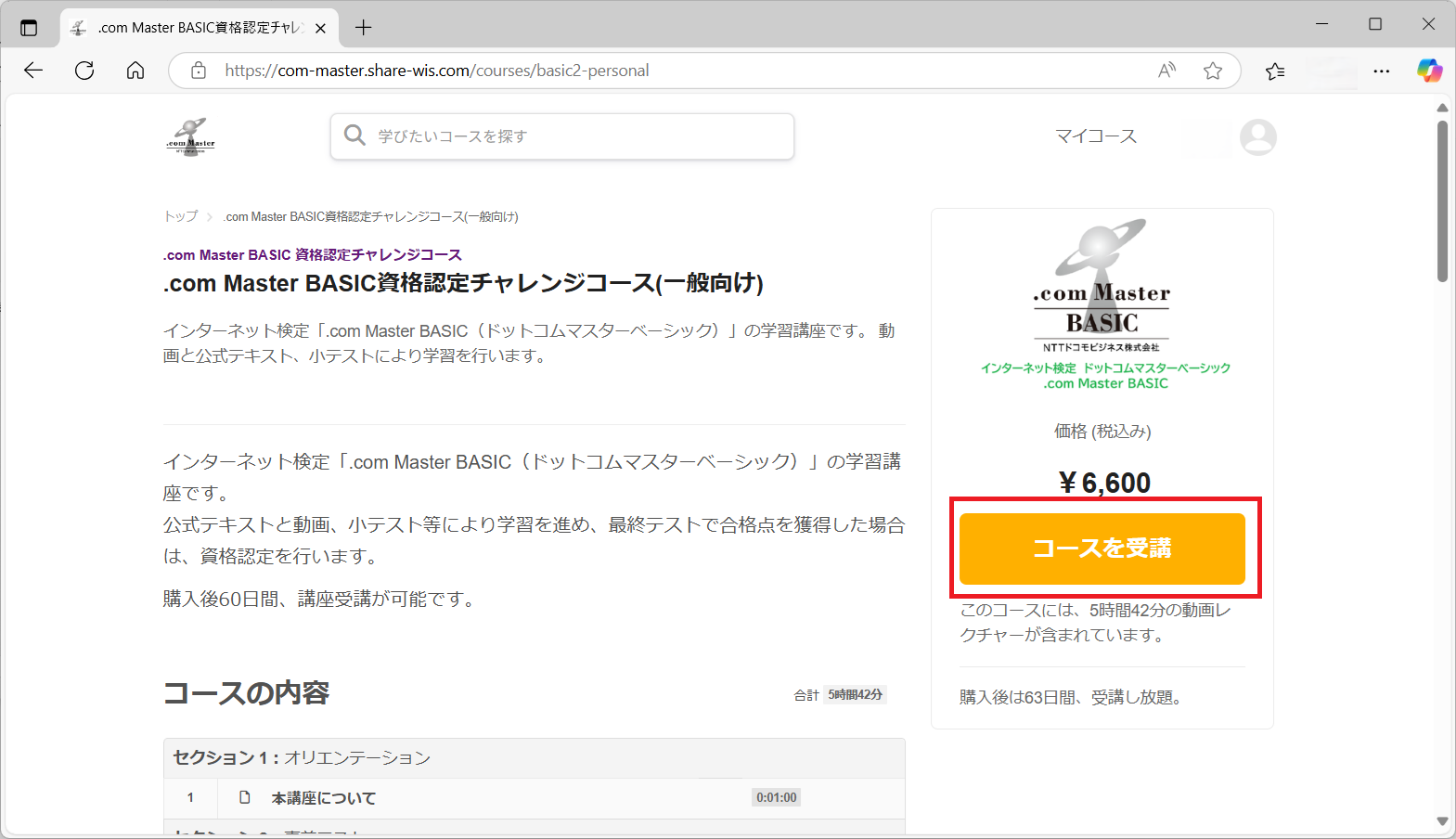 ・「.com Master BASIC資格認定チャレンジコース」の場合